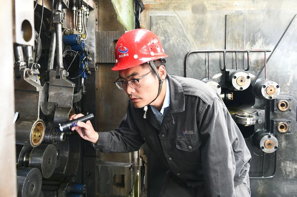 随着产品向“薄规格、高精度”转型,新的挑战又来了。辊系直径越来越小,磨削难度大,还容易导致轧辊弯曲、设备振动。万一多台轧机同时应用细辊径轧辊可能会一起出问题,这样整条线都得停。吴会涛在班组会上提出“两台轧机合理配辊”方案:始终保持“一粗一细”的搭配,一台用直径64mm以上的粗辊,另一台用62mm以下的细辊。这样一来,就算细辊轧机出了问题,另一台还能照常生产,保证了作业区持续稳定运行。